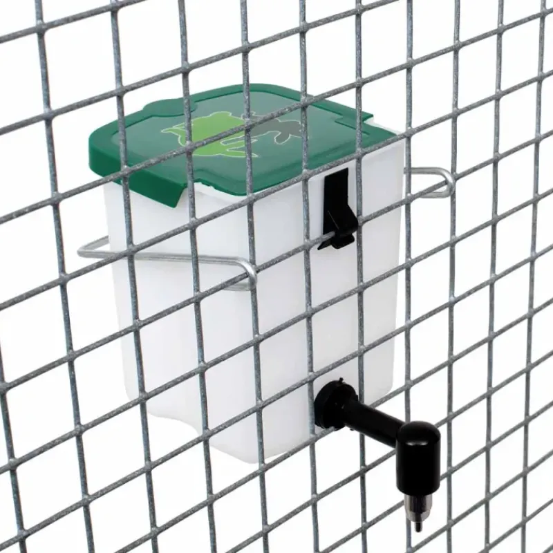 Il est fabriqué en plastique très solide et permet d’attacher très facilement l’abreuvoir.