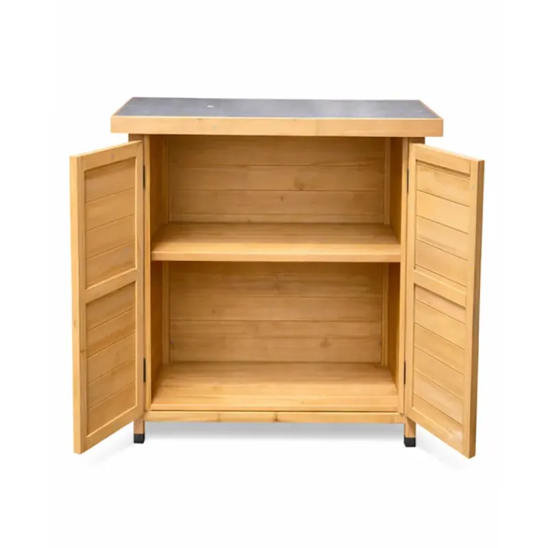 Fabriqué en bois d’une épaisseur de plateau de 1,2 cm, cet abri garantit robustesse et durabilité. Ses 4 pieds solides assurent une stabilité optimale sur tous types de sols, tout en protégeant la structure des remontées d’humidité.