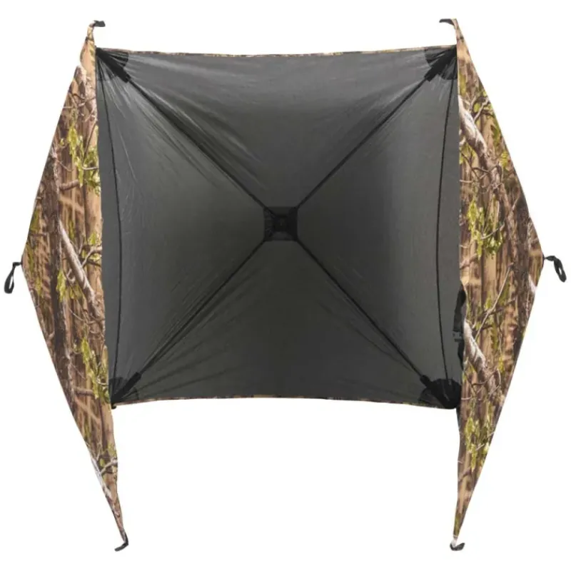 Sa structure escamotable 3 côtés se monte en quelques secondes seulement, permettant une installation rapide et silencieuse sur votre poste de chasse.