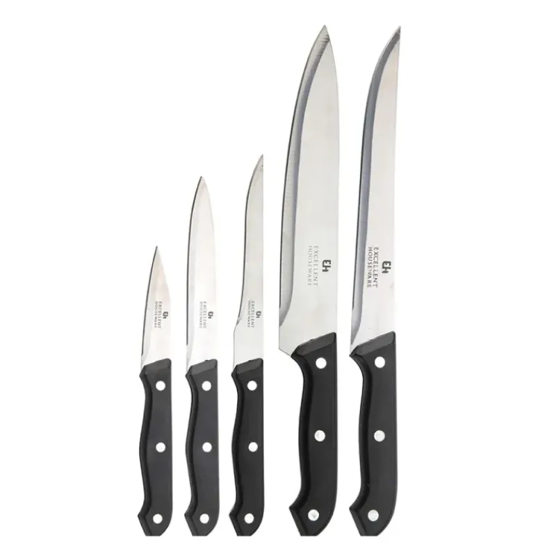 Ce bloc de 5 couteaux en acier inoxydable est le compagnon idéal de tous les cuisiniers, du débutant au chef confirmé.