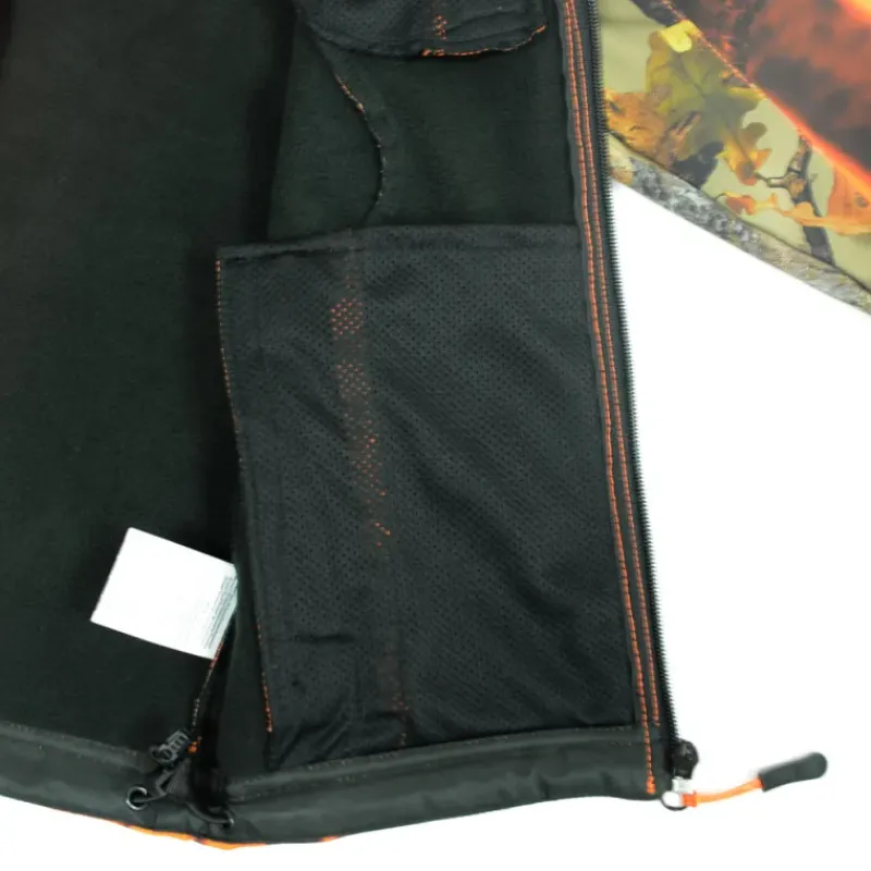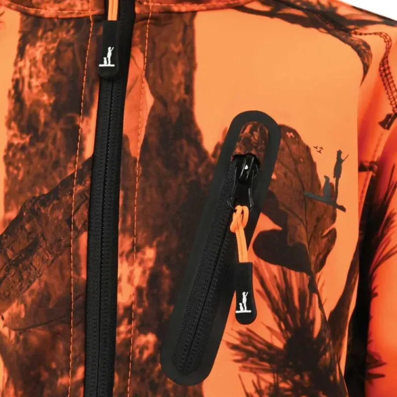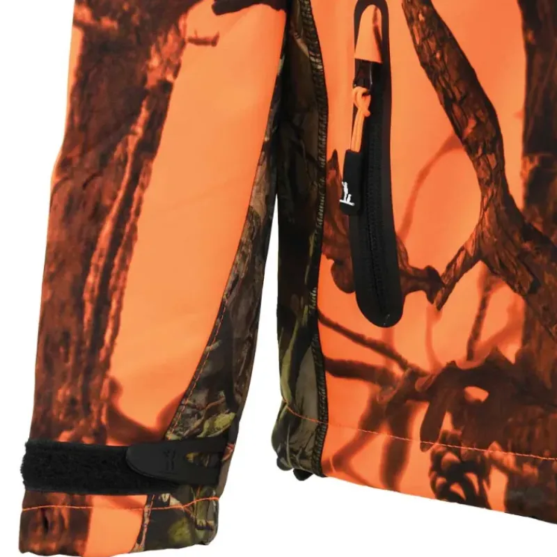 Composé à 97% de polyester et à 3% d’élasthane, ce blouson chasse enfant camouflé Ghostcamo blaze&black est normé CE.