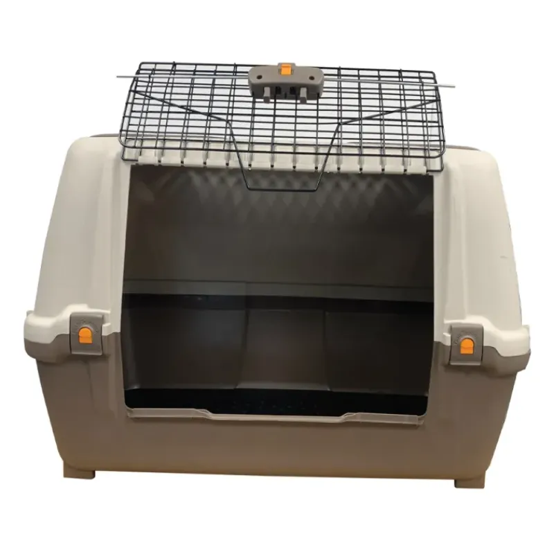 Cage de transport idéale pour véhicules à coffre court ou à haut rebord de coffre, l’ouverture de la cage de transport se fait du plus large côté.