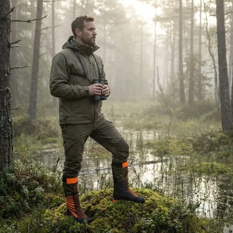 Ces chaussures-guêtres sont particulièrement recommandées pour la chasse au gibier d’eau, la traque en zones humides, les plaines marécageuses et les parcours boisés denses.