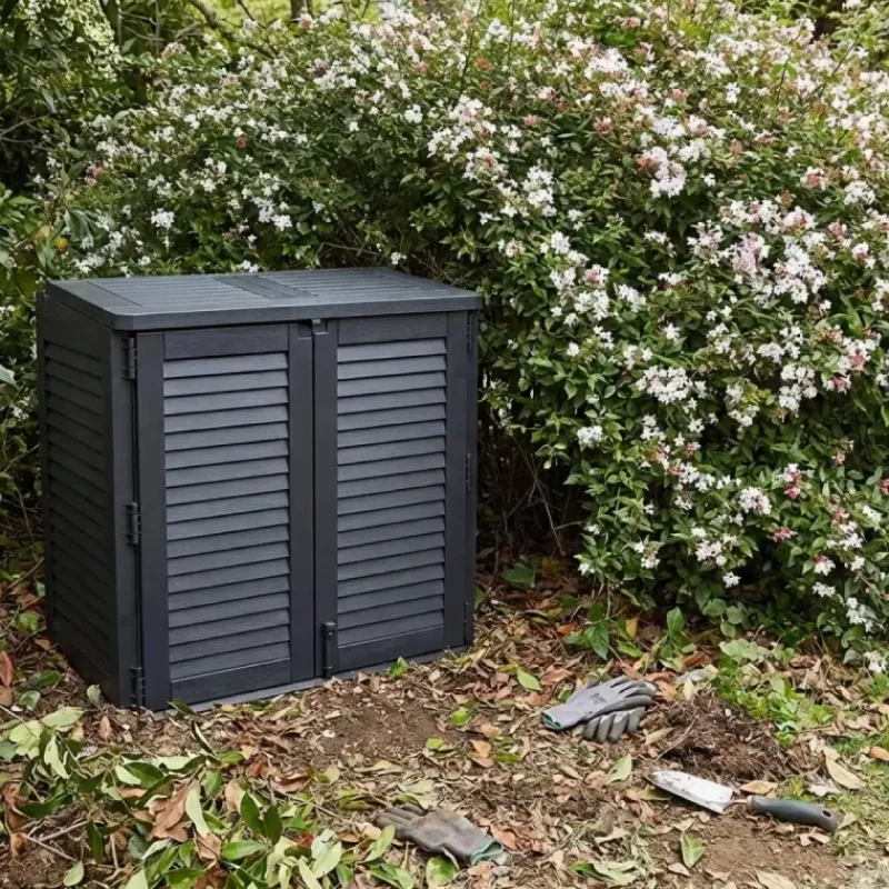 - Une polyvalence : idéal pour ranger coussins, outils, matériel de jardinage et même 2 grandes poubelles.