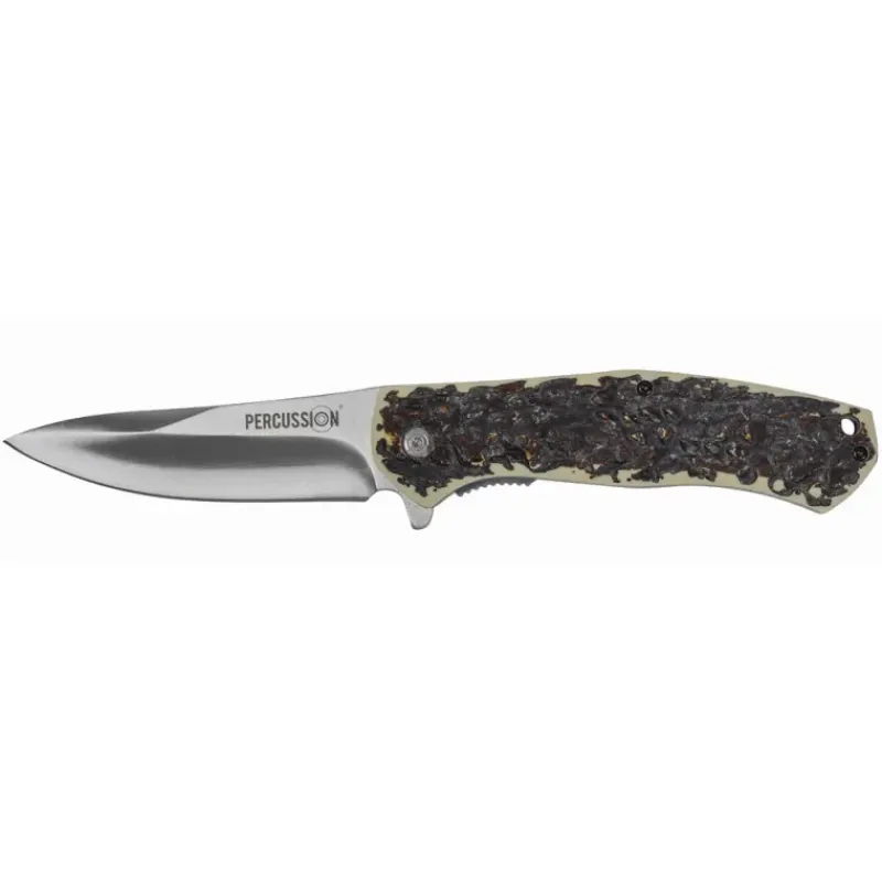 Couteau chasse pliant lame acier inox 9cm manche imitation corne
