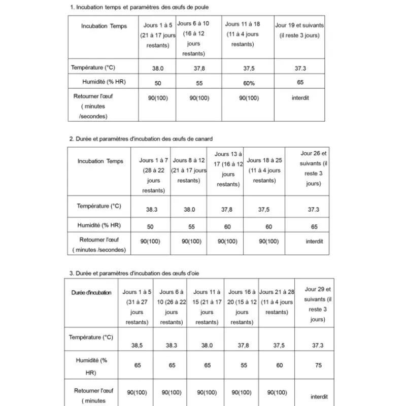 Son design permet une observation claire et pratique de l’évolution des œufs sans perturber leur développement. La couveuse offre une incubation homogène et stable, essentielle pour le bon développement des embryons.