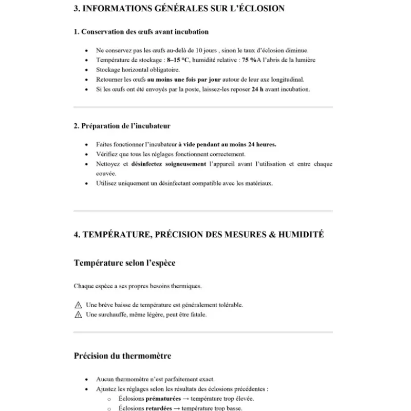 Son design permet une observation claire et pratique de l’évolution des œufs sans perturber leur développement. La couveuse offre une incubation homogène et stable, essentielle pour le bon développement des embryons.