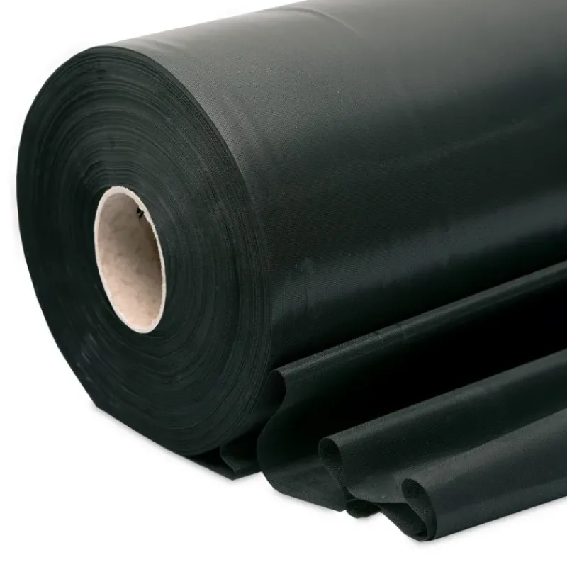 Ce feutre de paillage évite la pousse de mauvaises herbes.