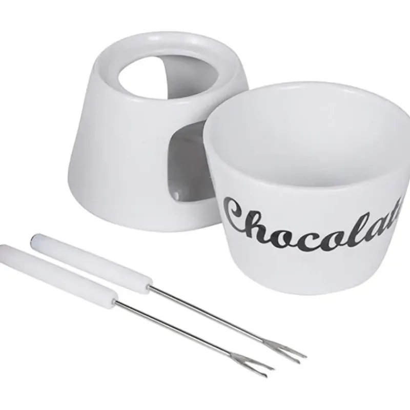 Fondue chocolat porcelaine 12x12x15cm avec 2 fourchettes inox