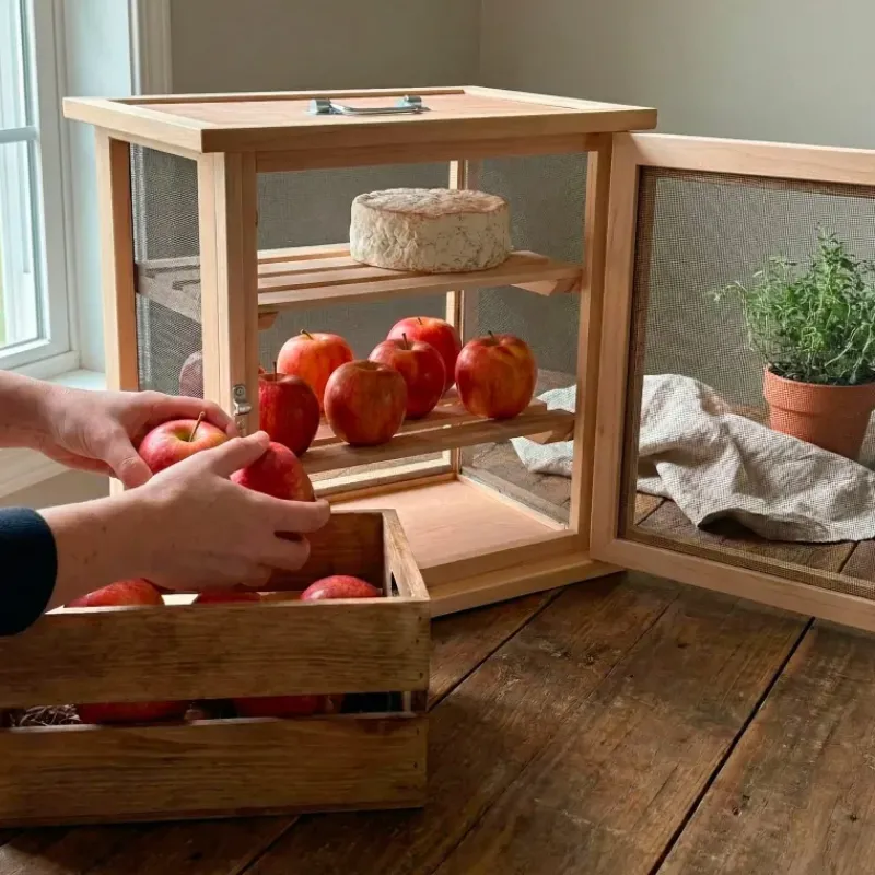 Ce garde-manger vous permettra de stocker vos légumes, saucissons, charcuteries, fruits, fromages, à l’abri de la lumière et des insectes.