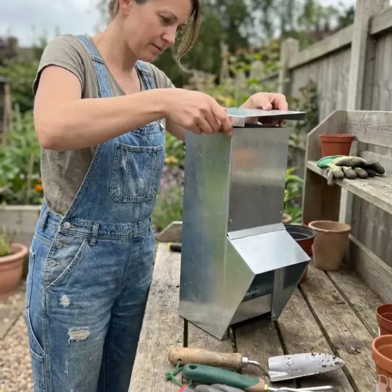 Optez pour cette mangeoire galvanisée à trémie !