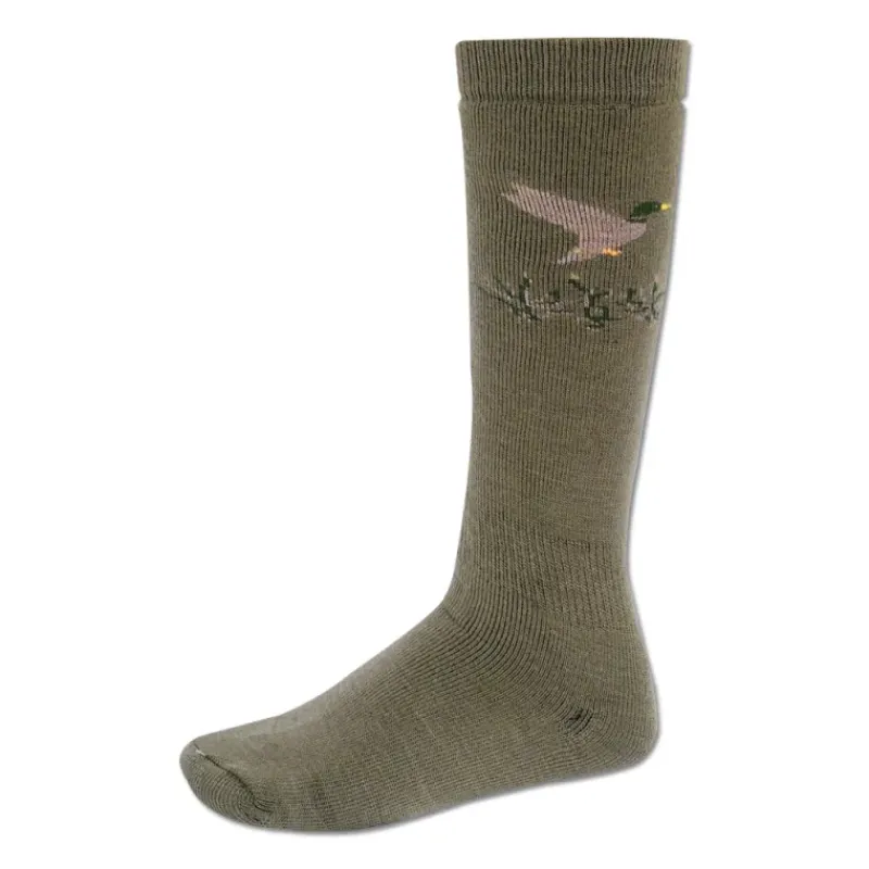 Lot de 2 paires de chaussettes montantes, coloris kaki, motifs canard et cerf.