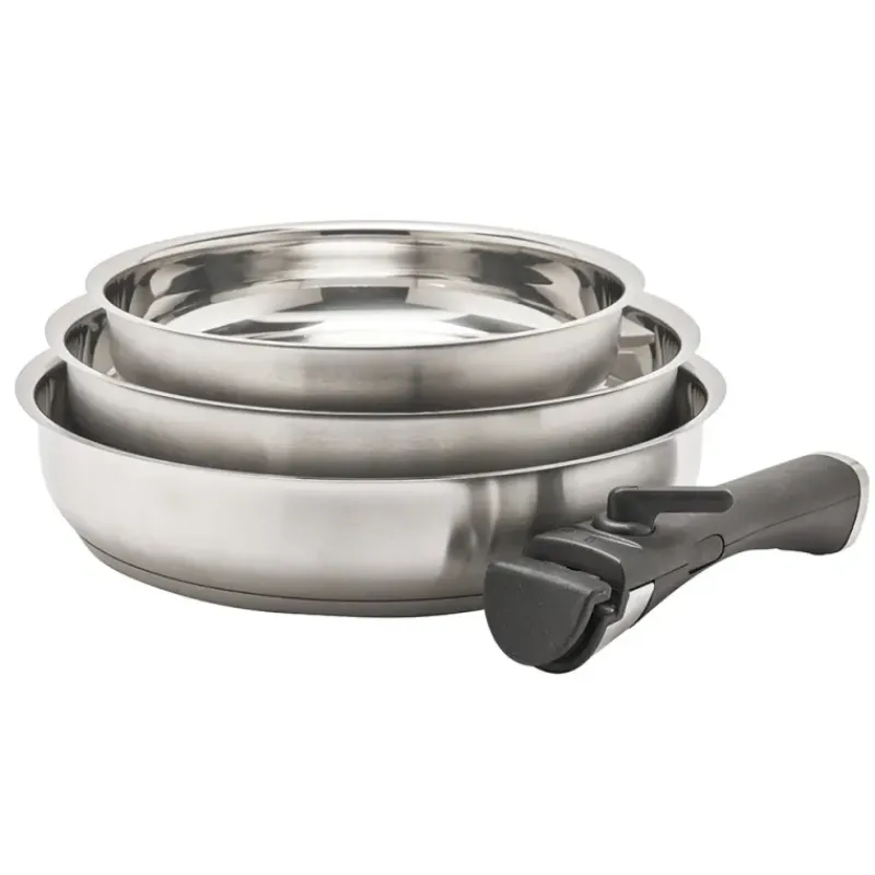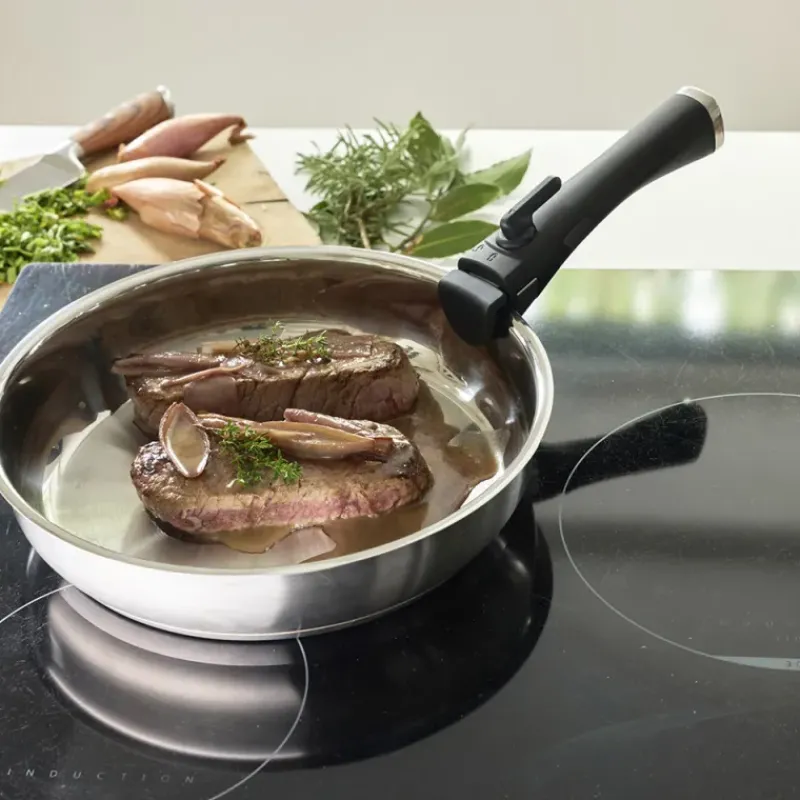 Leur manche amovible, facile à utiliser, permet de passer d’une poêle à l’autre en un simple clic.