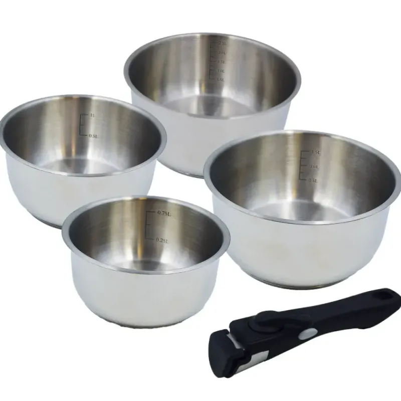 Lot de casseroles inox à manche amovible 14/16/18/20 cm – Tous feux