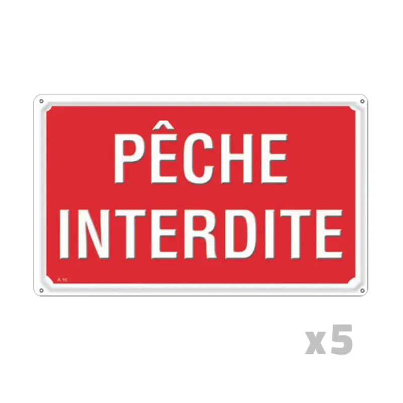 Lot de 5 Panneaux PÊCHE INTERDITE Aluminium 30X20cm