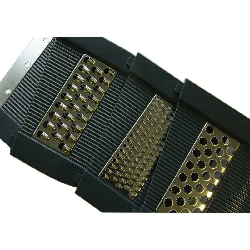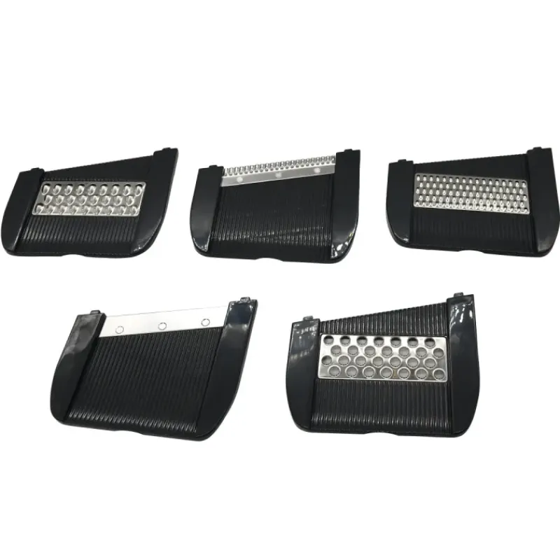 3 râpes avec des trous de diamètre 2,5 mm, 6 mm ou râpe à fromage ou chocolat.