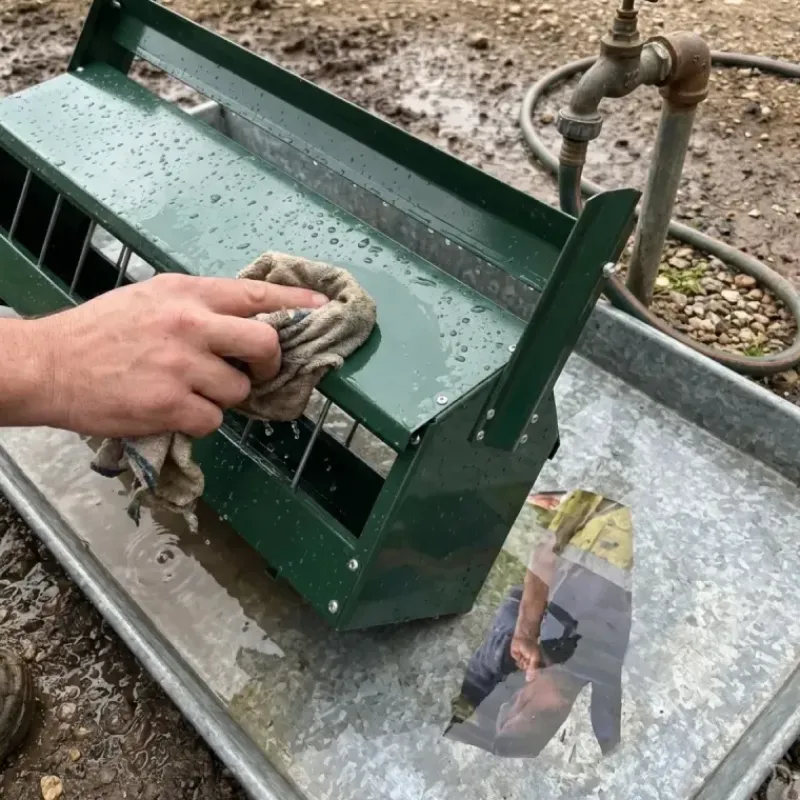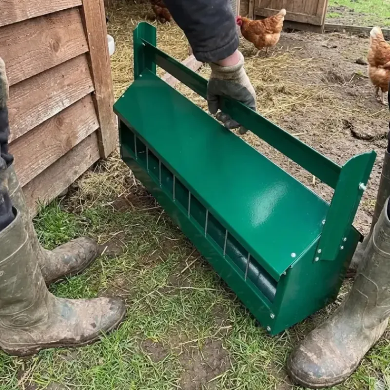 Avantages Mangeoire galva avec rouleau thermolaqué vert :