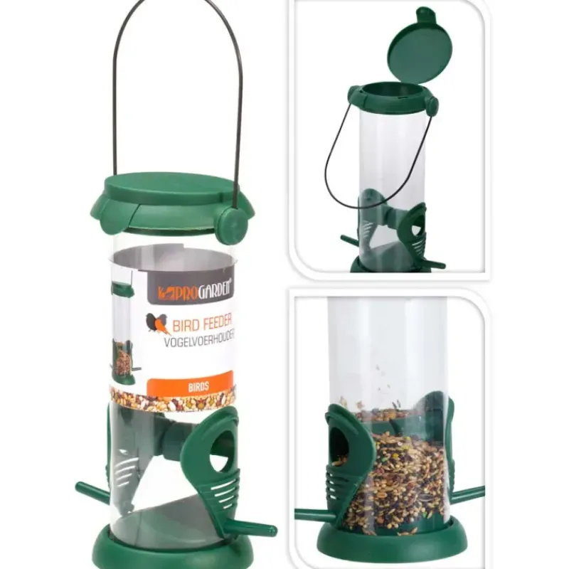 Ce distributeur de graines permet d’offrir une alimentation régulière aux oiseaux sauvages, favorisant ainsi la biodiversité de votre espace vert tout en vous offrant le plaisir d’observer les différentes espèces qui viendront s’y nourrir.