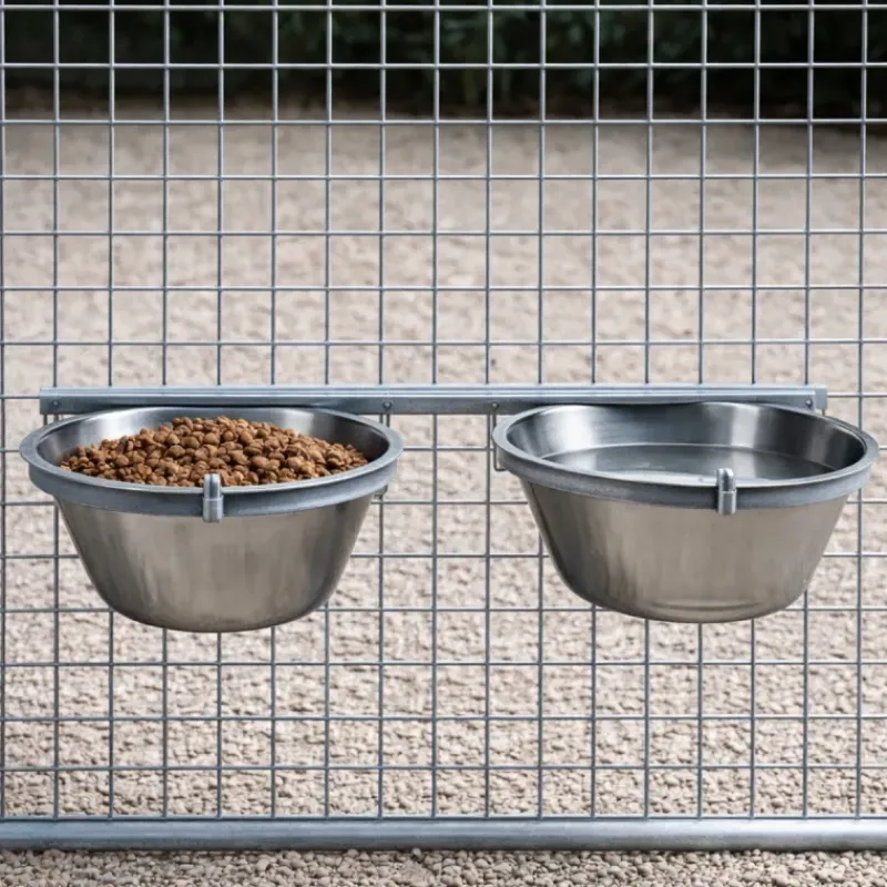 Mangeoire professionnelle double pour chenil acier galvanisé 2 X 2,5L