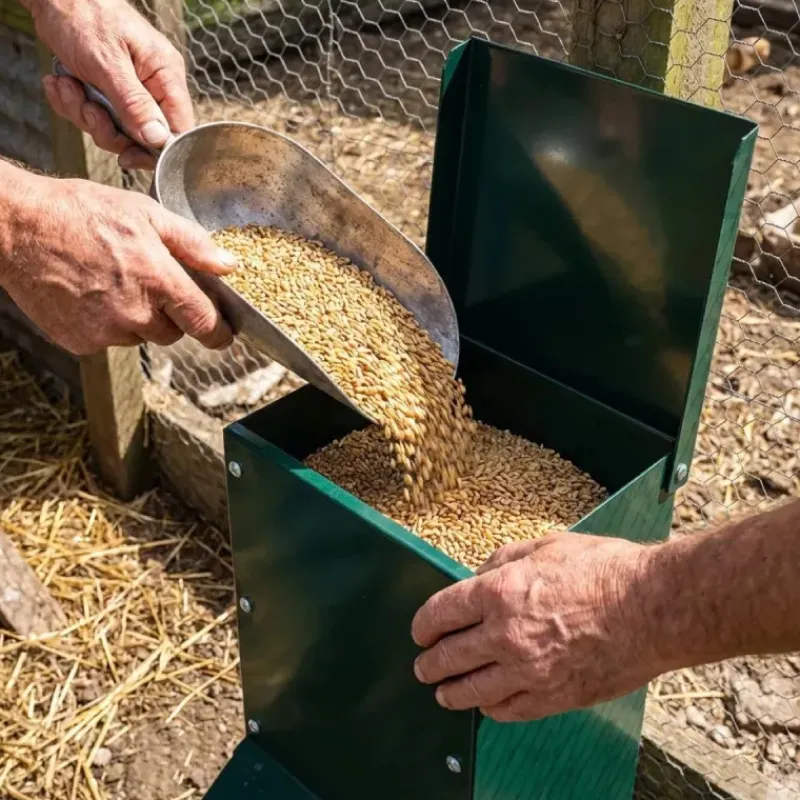 Mangeoire métal galvanisée peinture epoxy verte anti gaspillage 7 kg