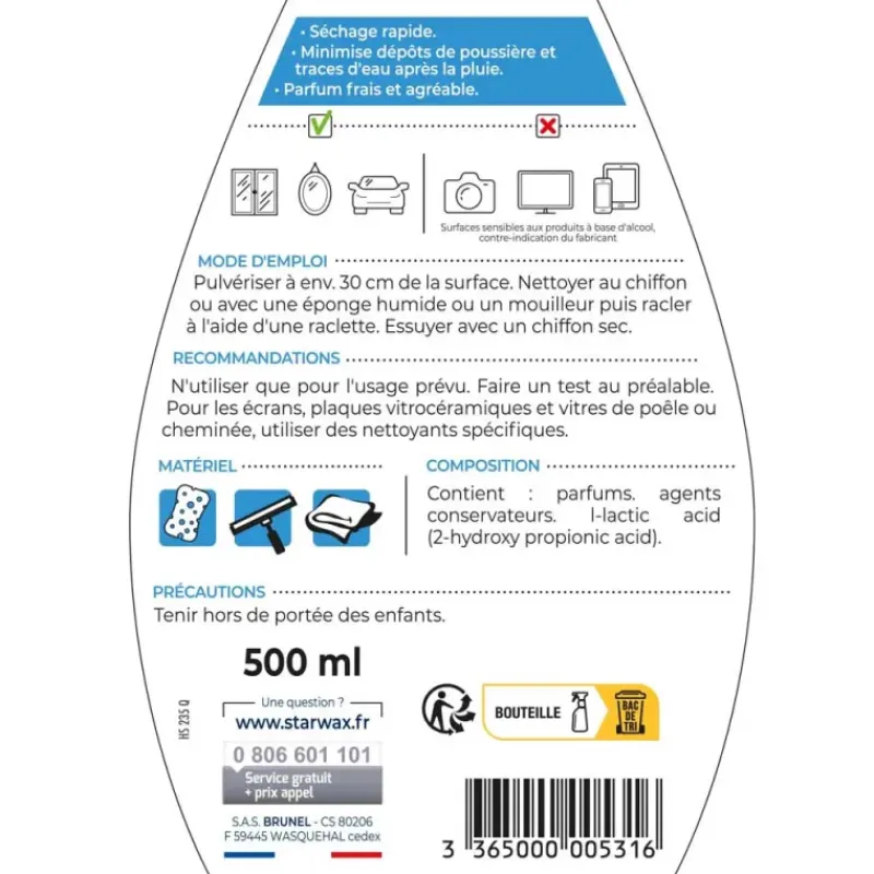 Nettoyant Spécial Vitres et Miroirs Dégraissant Starwax Séchage Rapide 500ml