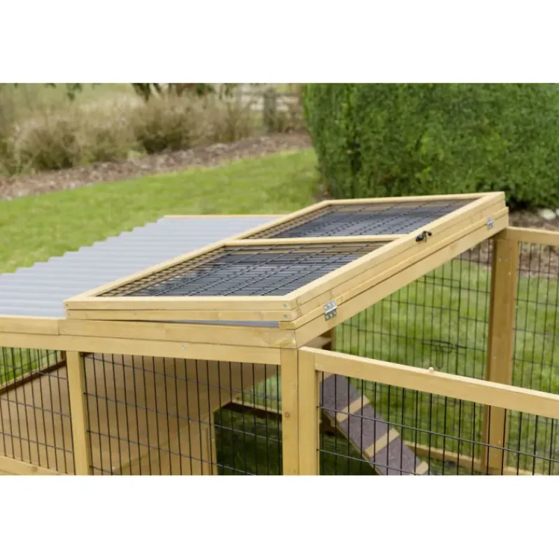 Cet enclos est idéal pour permettre à vos animaux de prendre l’air tout en étant protégé des intempéries grâce au petit abri et au toit en plastique robuste.