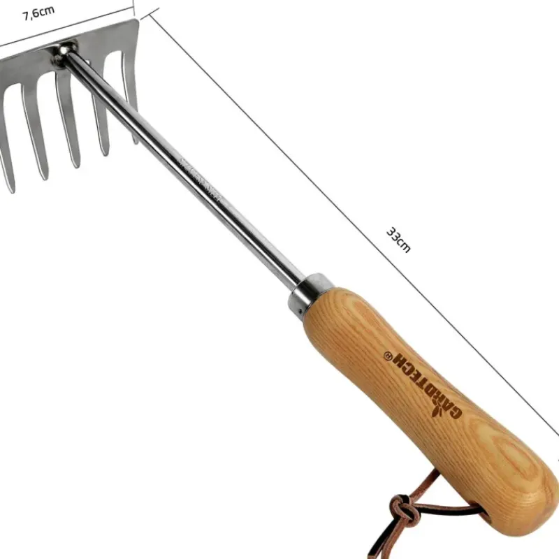 Compact, léger et ergonomique, ce râteau manuel en acier inoxydable est l’allié parfait des jardiniers amateurs ou passionnés.
