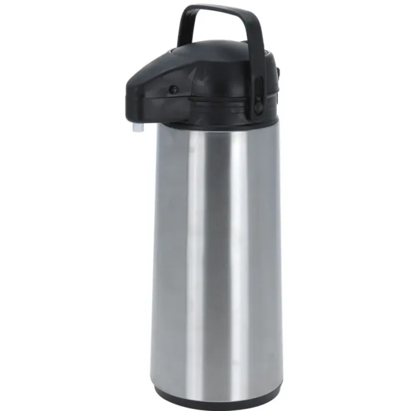 Le pichet isotherme à pompe est équipé d’un couvercle avec bouton poussoir offrant un meilleur rendement thermique, et d’un bec garantissant un écoulement régulier et une meilleure rétention de la chaleur.