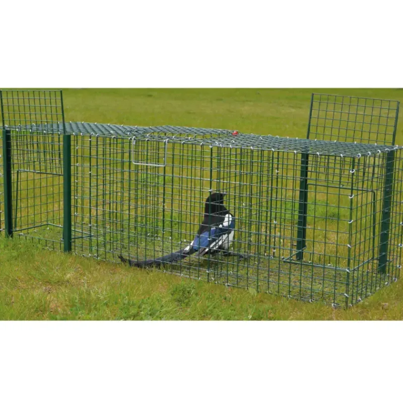 Grâce aux portes d’entrées surdimensionnées, ce piège à pie se révèle particulièrement efficace pour les oiseaux de grandes tailles.