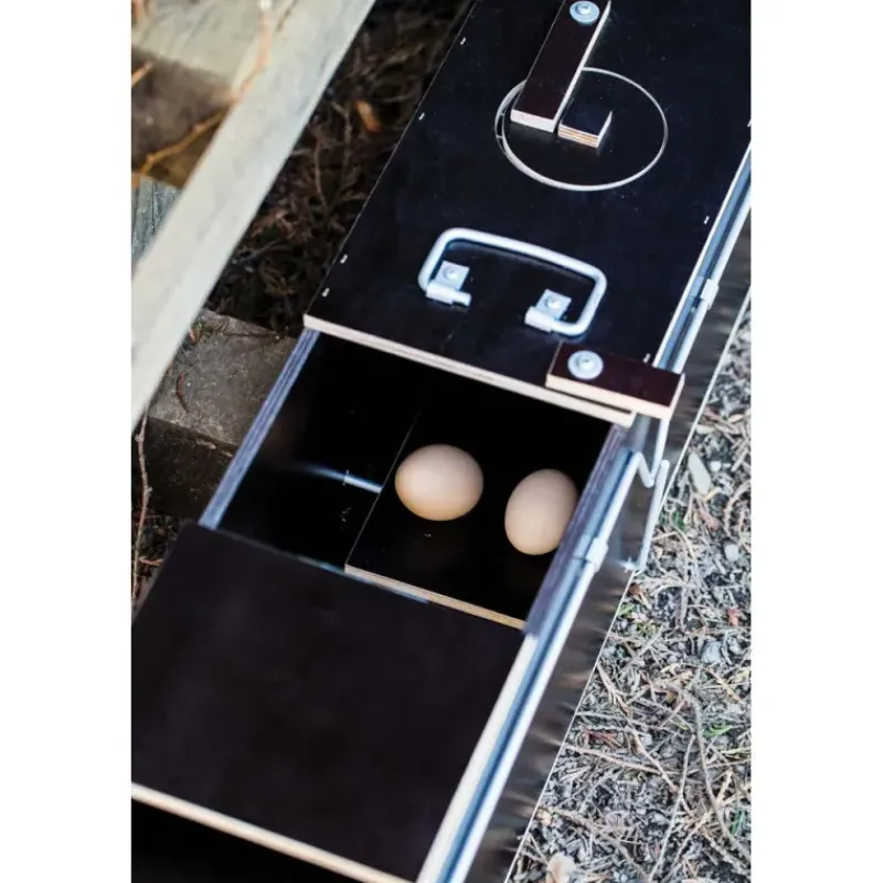 des planches de contreplaqué de bouleau hydrofuge résistantes aux intempéries, des tiges de déclenchement en aluminium qui lui assurent la plus grande longévité. Composé de planches de contreplaqué de bouleau, il est doté d’une porte renforcée de grillage, d’une trappe de visite protégée d’un grillage galvanisé et d’éléments en métal galvanisé assurant une protection anti-corrosion.