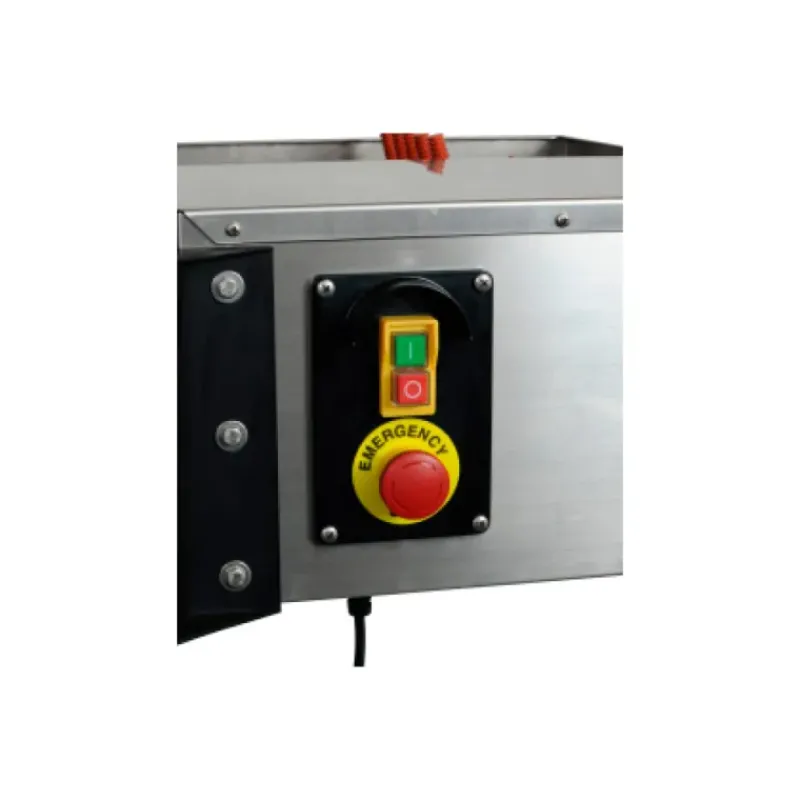Ce modèle de plumeuse à doigt possède un bouton d’arrêt d’urgence et une sécurité anti-surchauffe.