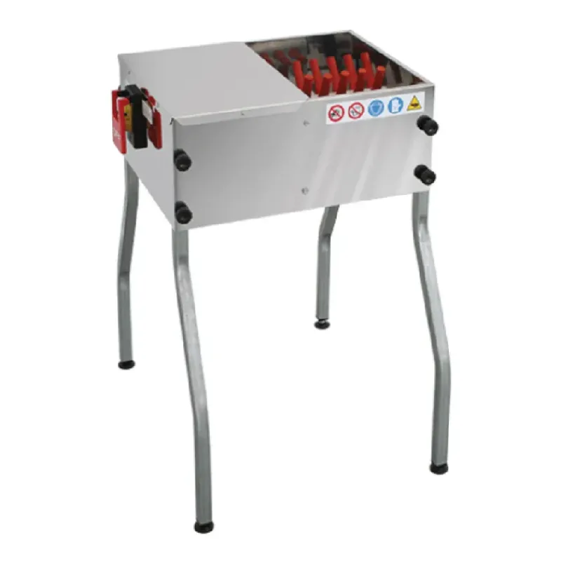 La structure en acier inoxydable est protégée par un film PVC amovible, assurant une excellente résistance à la corrosion et facilitant le nettoyage. Le moteur est intégré dans une base stable à quatre pieds d’appui garantissant une parfaite stabilité durant l’utilisation.