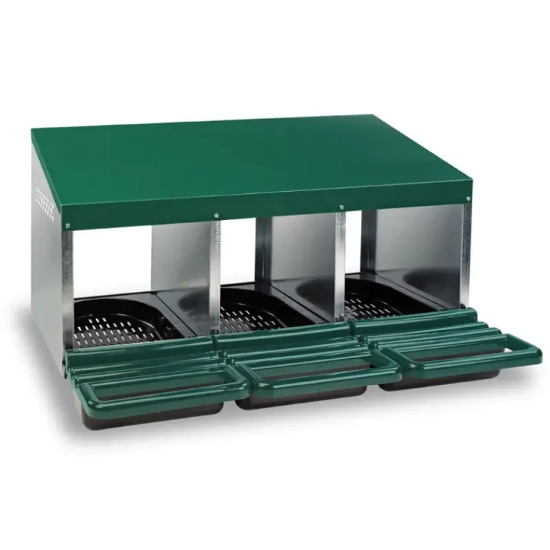 Conçu pour les petits et moyens élevages, ce pondoir 3 nids en tôle galvanisée offre une solution durable, hygiénique et bien pensée pour assurer le confort de ponte des poules et la protection des œufs.