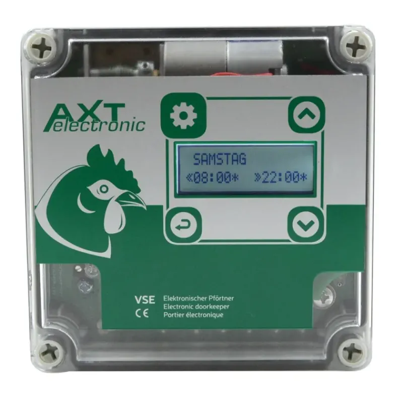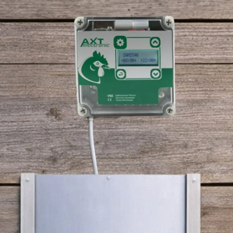 Ce modèle permet également de paramétrer les heures d’ouverture et de fermeture du portier grâce à une horloge intégrée.