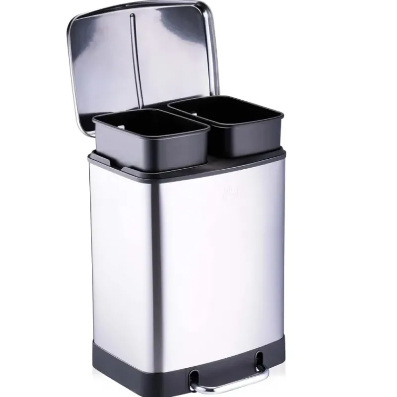 Poubelle à pédale 2 bacs acier inox brossé argenté 2x12L* Best