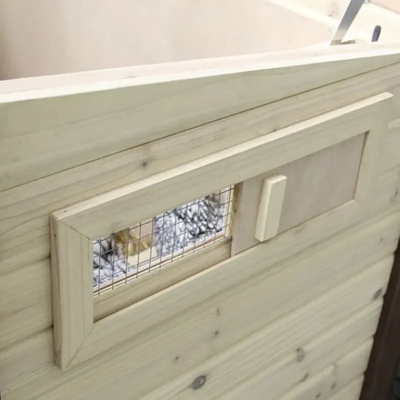 - Les parois du poulailler sont doublement isolées (épaisseur de 3,5 cm).