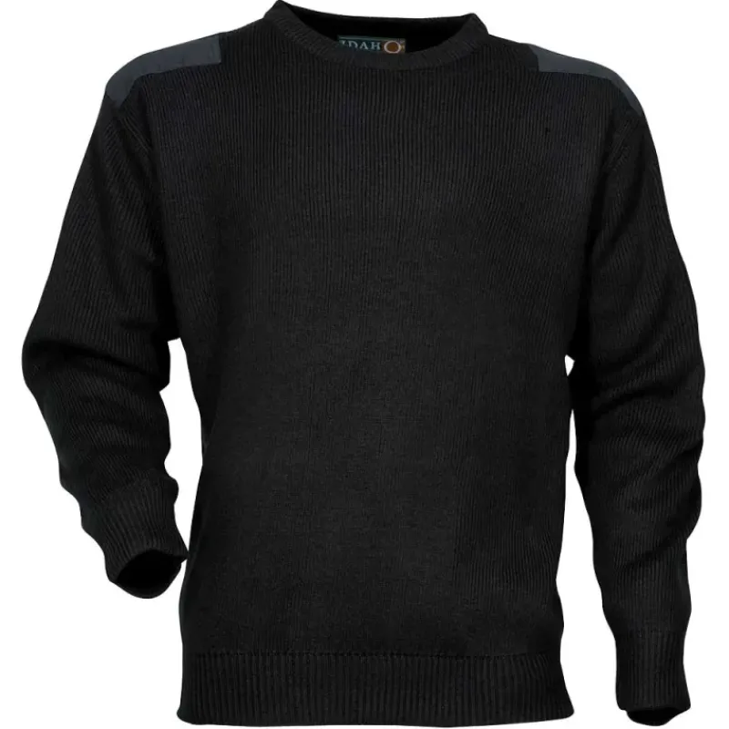 Pull commando noir 100% acrylique col rond renforts épaules coudes