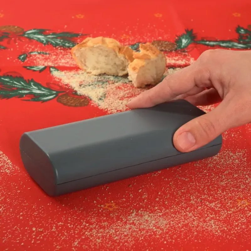 Envoie les miettes dans le réservoir qui se vide facilement.