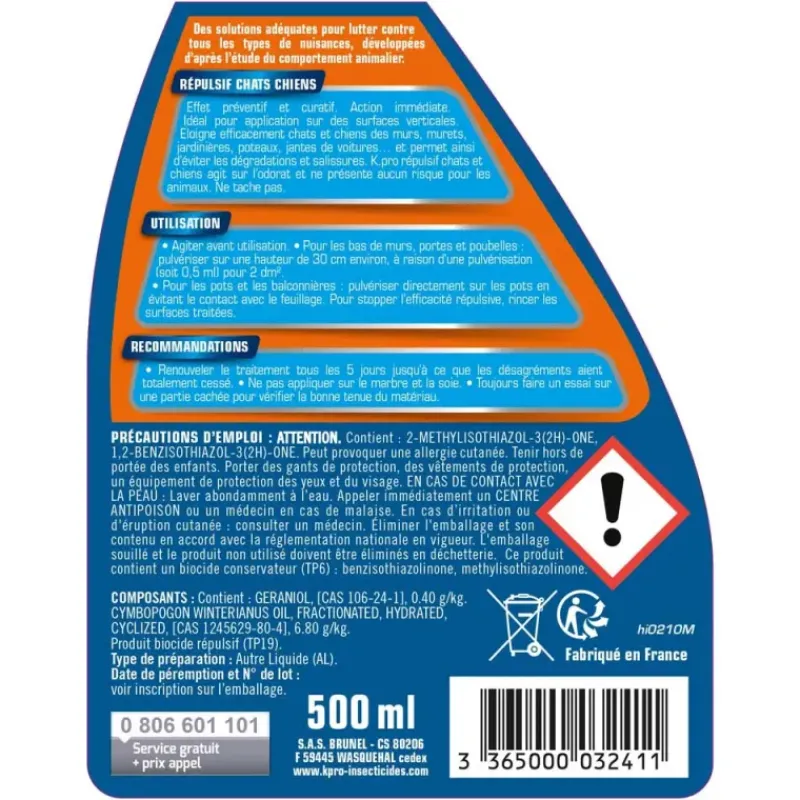 Répulsif chiens et chats géraniol 500ml anti-dégradations