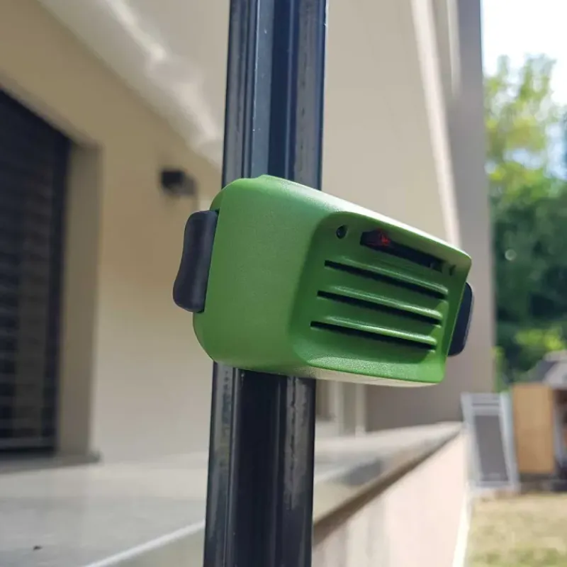 Il émet un son intermittent à modulation de fréquence adapté pour éloigner les oiseaux et éviter l’accoutumance.