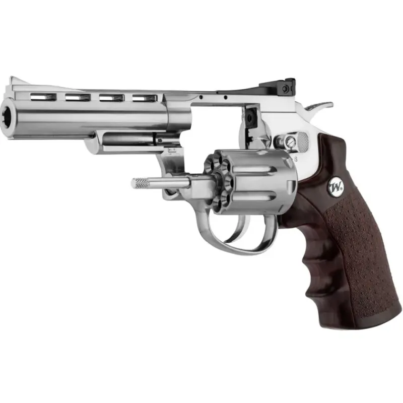 - Revolver à CO2 calibre 4,5 mm tirant des diabolos. Fonctionne en simple ou double action.
