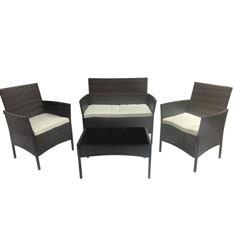 Salon de jardin 4 pièces résine tressée marron