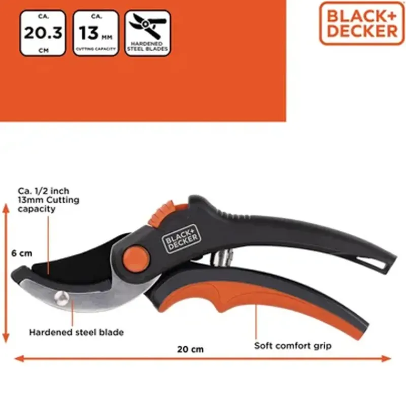 Sécateur à disposition coupant croisé Black&Decker® 20cm – L’outil indispensable pour un jardinage précis et confortable