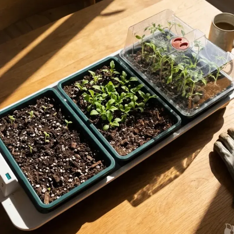 - Un thermostat automatique maintenant la terre de semis à température idéale.