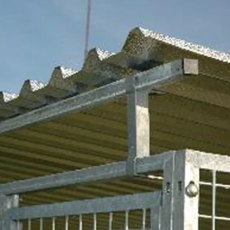 Pièce intermédiaire entre les panneaux de chenil à barreaux (ou à mailles carrées) et la barre de fixation de la tôle servant à la confection de la toiture.