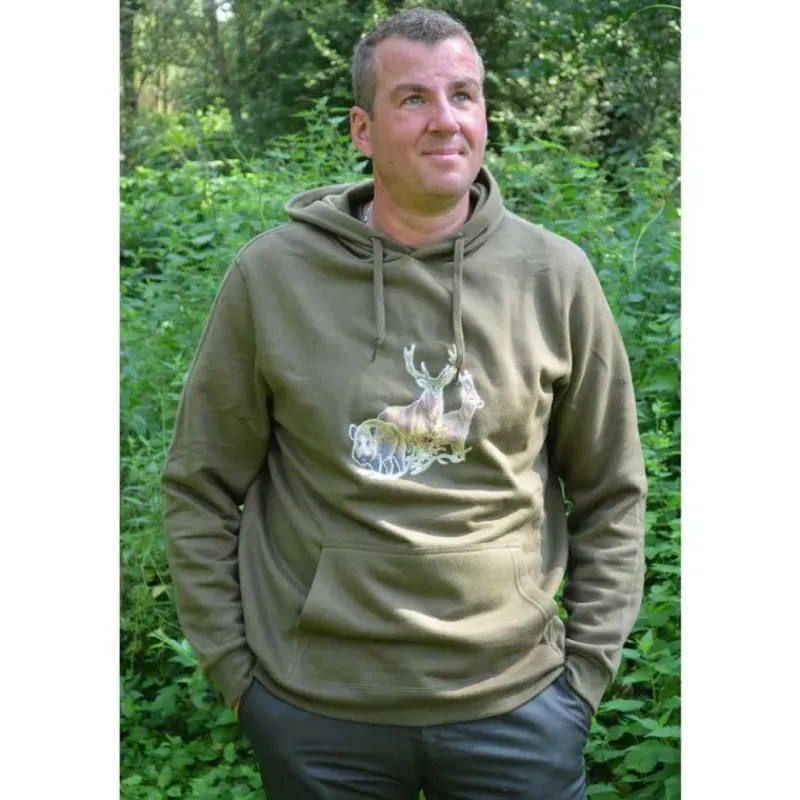Orné d’un dessin sérigraphié représentant une scène de chasse aux grands animaux, ce sweat est parfait pour les amoureux de la nature, les passionnés de chasse ou les adeptes des activités de plein air.