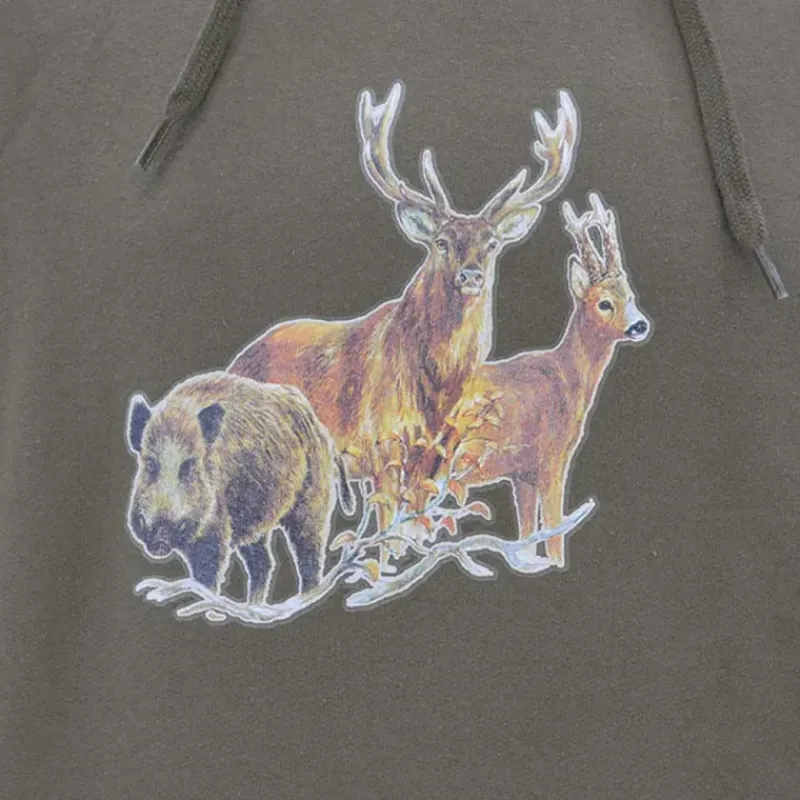 Caractéristiques Sweat à capuche kaki grands animaux Bartavel® :