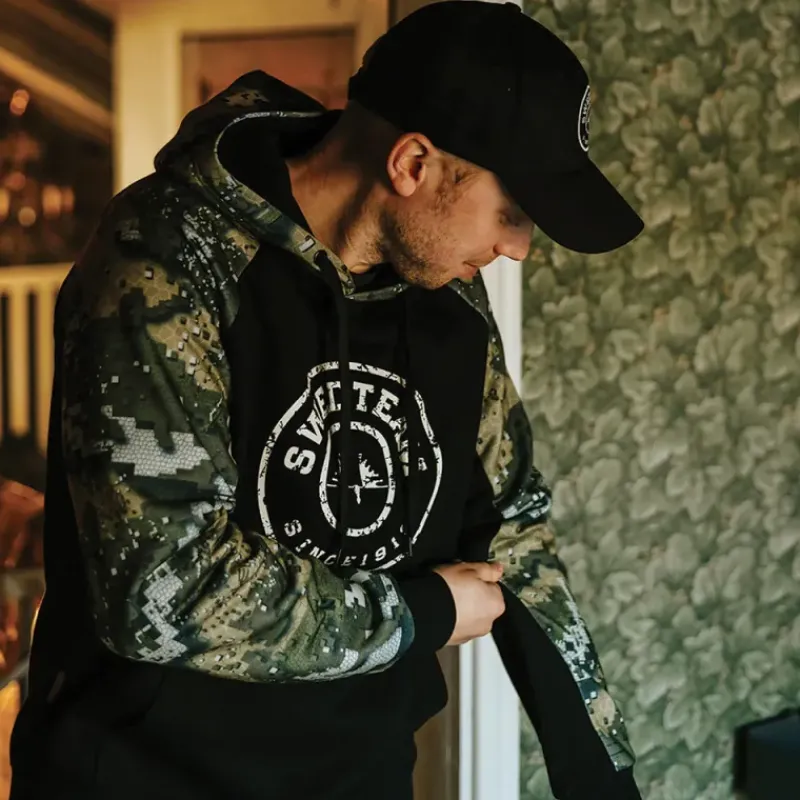 Avec son look unique associant le camouflage DESOLVE® Veil sur les manches et la capuche à un coloris noir élégant sur le reste du sweat, le Ridge Hoodie s’adapte aussi bien aux environnements naturels qu’à une tenue décontractée en ville.