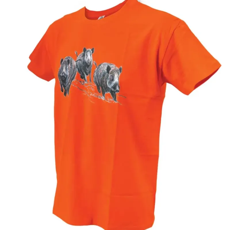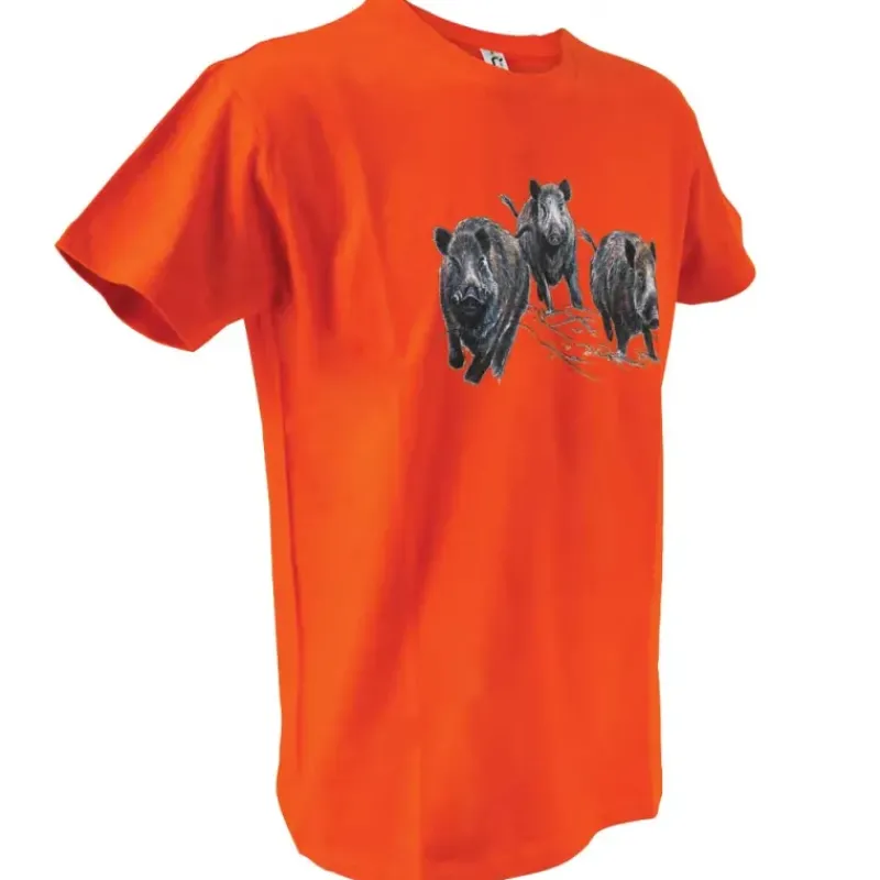 Ce t-shirt met en avant une scène de chasse, avec trois sangliers courants magnifiquement sérigraphiés.