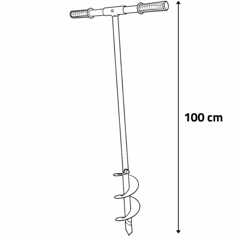 Possède 2 poignées, elle permet de creuser des trous d’une profondeur de 1 mètre, avec un diamètre de 10 ou de 15 cm.